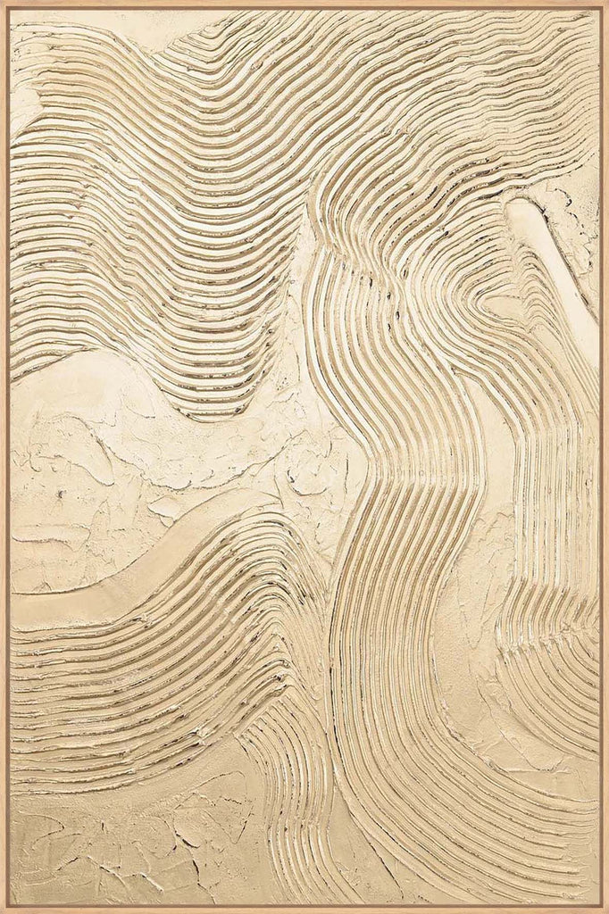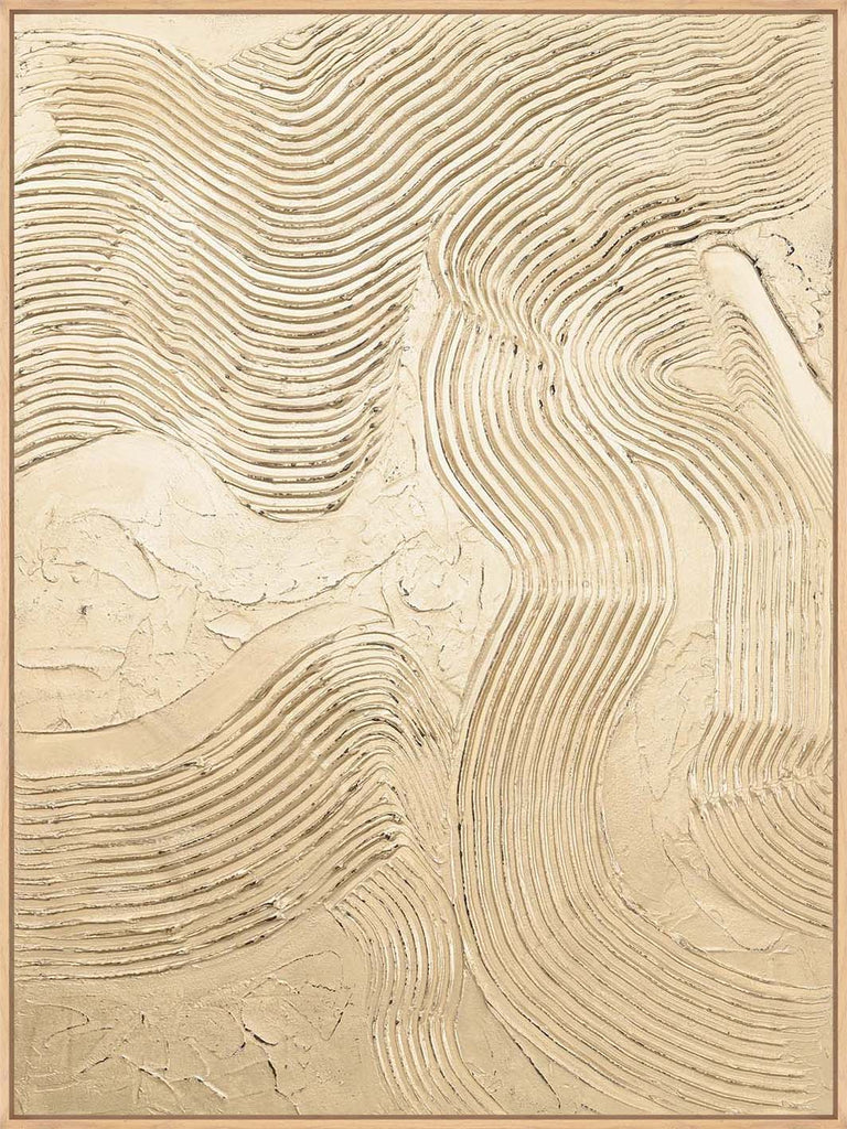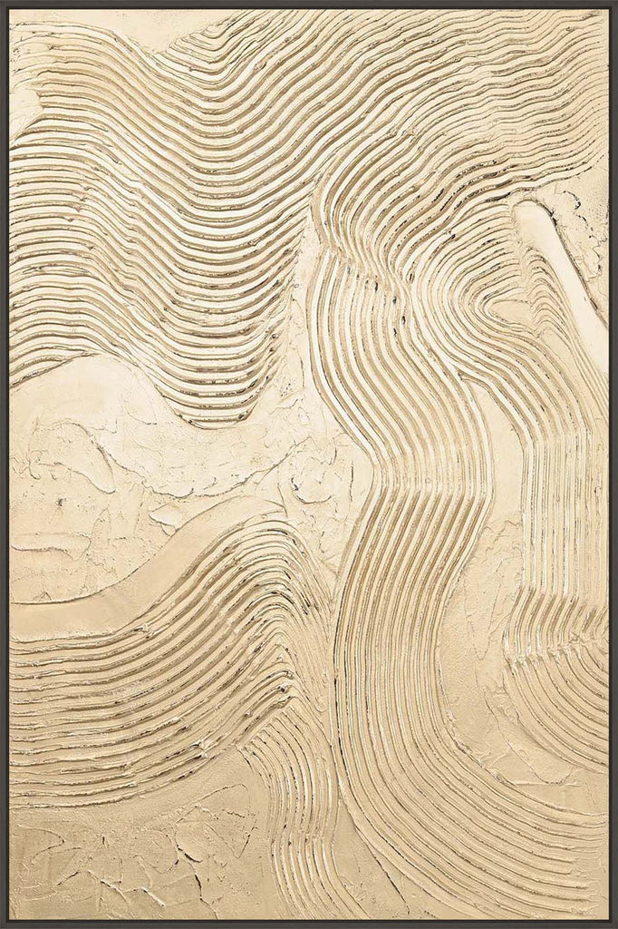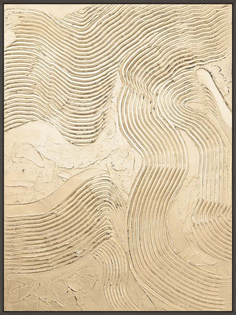 Vorherige Nächste"Metallic Champagner" ist ein abstraktes Stück mit strukturierten Linien und einer Champagne-farbigen metallischen Oberfläche, die jedem Raum viel Glanz und Eleganz verleiht.