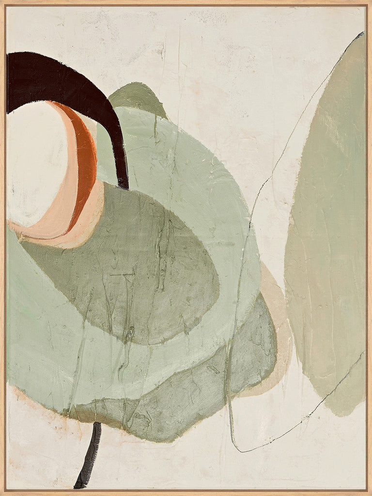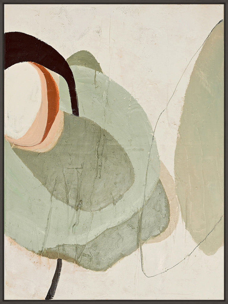 Vorherige Nächste"Moon Rock" ist ein abstraktes Gemälde mit weichen, organischen Formen und einer eleganten grünen metallischen Farbe, die das Kunstwerk und ein Gefühl der Tiefe verleiht.